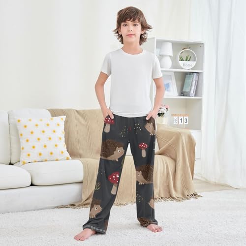 ZZXXB Hedgehogs Mushroom Boys Long Pants velvety Trousers Elastic Waist Kids Lounge Bottoms with Pockets S-XL