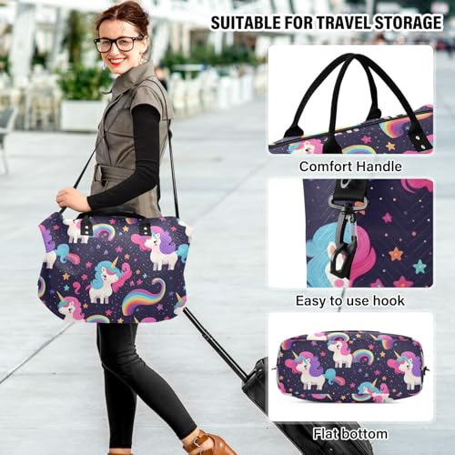 Cute Galaxy Stars Unicorn Travel Duffle Bag,Large Weekender Travel Bag for Women Men Waterproof Luggage Bag with Trolley Sleeve,Airplane Travel Essentials for Flying