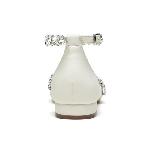 Flat Wedding Shoes for Bride Rhinestones Pointed Toe Ankle Strap Bridal Flats Women Formal Shoes