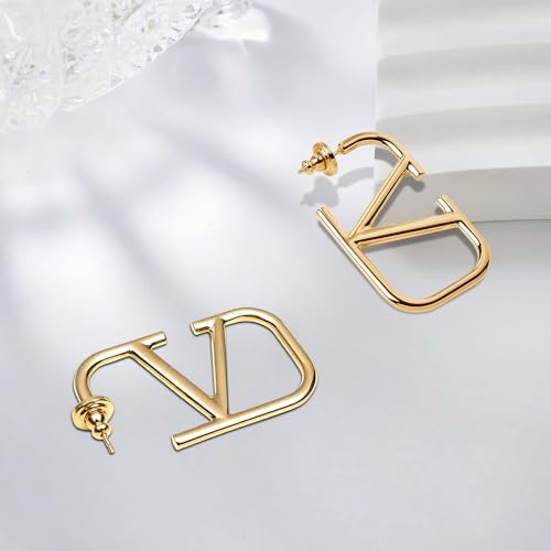 Luxury 14K V-Shaped Geometric Earrings Women Letter V Hypoallergenic Earrings Dangle Earrings Lightweight Alphabet