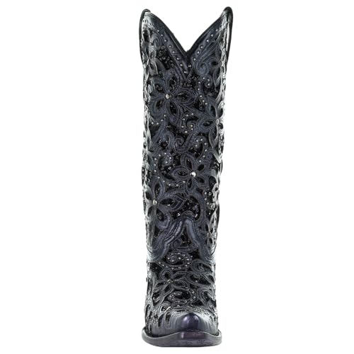 CORRAL LADIE'S BLACK INLAY & EMBROIDERY & STUDS, SNIP TOE, LEATHER SOLE, WESTERN, A3752