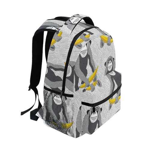 Fisyme Grey Monkey Banana Laptop Backpack Bag Bookbag Casual Hiking Travel Computer Notebooks Daypacks