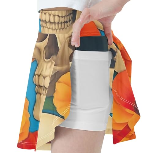 Skirts with Shorts Human Skulls Blooming Flowers Athletic Shorts for Girls Skorts Navy Cheer Skirt 4t