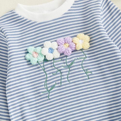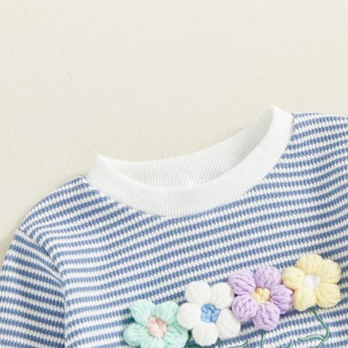 Newborn Baby Girl Romper 3D Flower Fall Winter Clothes Striped Waffle Bubble Sweatshirt Cute Coming Home Outfit