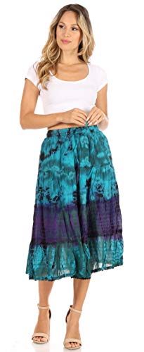 Sakkas Antonia Women's Skirt Tie Dye Boho Elastic Waist Adjustable Embroidery