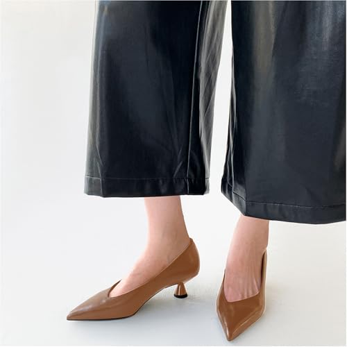 LEMUTISME Women's Spring Summer Collection Pointed Toe Matte Elegant Low Cut Low Heel Slip On Dress Pumps