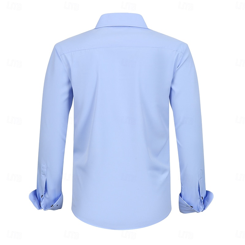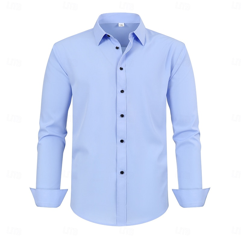 This Men's Dress Shirt Non Iron Shirt Stretch Plain Wedding Outdoor Black White Navy Blue Sky Blue Long Sleeve Spread Collar Summer Spring Clothing Apparel combines elegant design with practical functionality. Every detail has been carefully considered to ensure you get the leading possible experience. The superior construction means this product will serve you well for years to come.